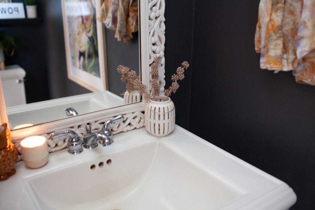 To wrap things up; was this project easy? Definitely. Was it more time consuming than I thought it would be? Absolutely, and in that sense, it was harder than I expected it to be. Would I do it again? Yes, I’m over-the-moon happy with my moody black powder bath! I’m glad I did it and would most definitely do it again.