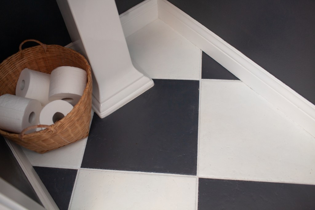 Here’s How to Paint Ugly Tile Floors in a Checkered Pattern: