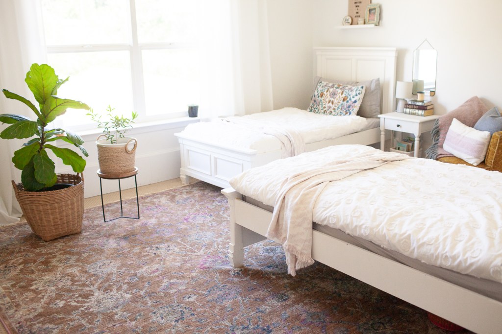 On a different note, I wanted to share the new rug I got for my girls’ bedroom. This room–a favorite space of mine– has come so far in the last five years since we bought our house, and I’ve been dreaming about getting a rug in there from the get go. For awhile, I was convinced I’d get a giant round rug someday, but when I spotted this Giada Loloi Rug from a distance at Home Goods, I couldn’t help but haul it home for a try. It took the help of my mom and sister to get it placed beneath the adjacent twin beds, but we did it and I love it!