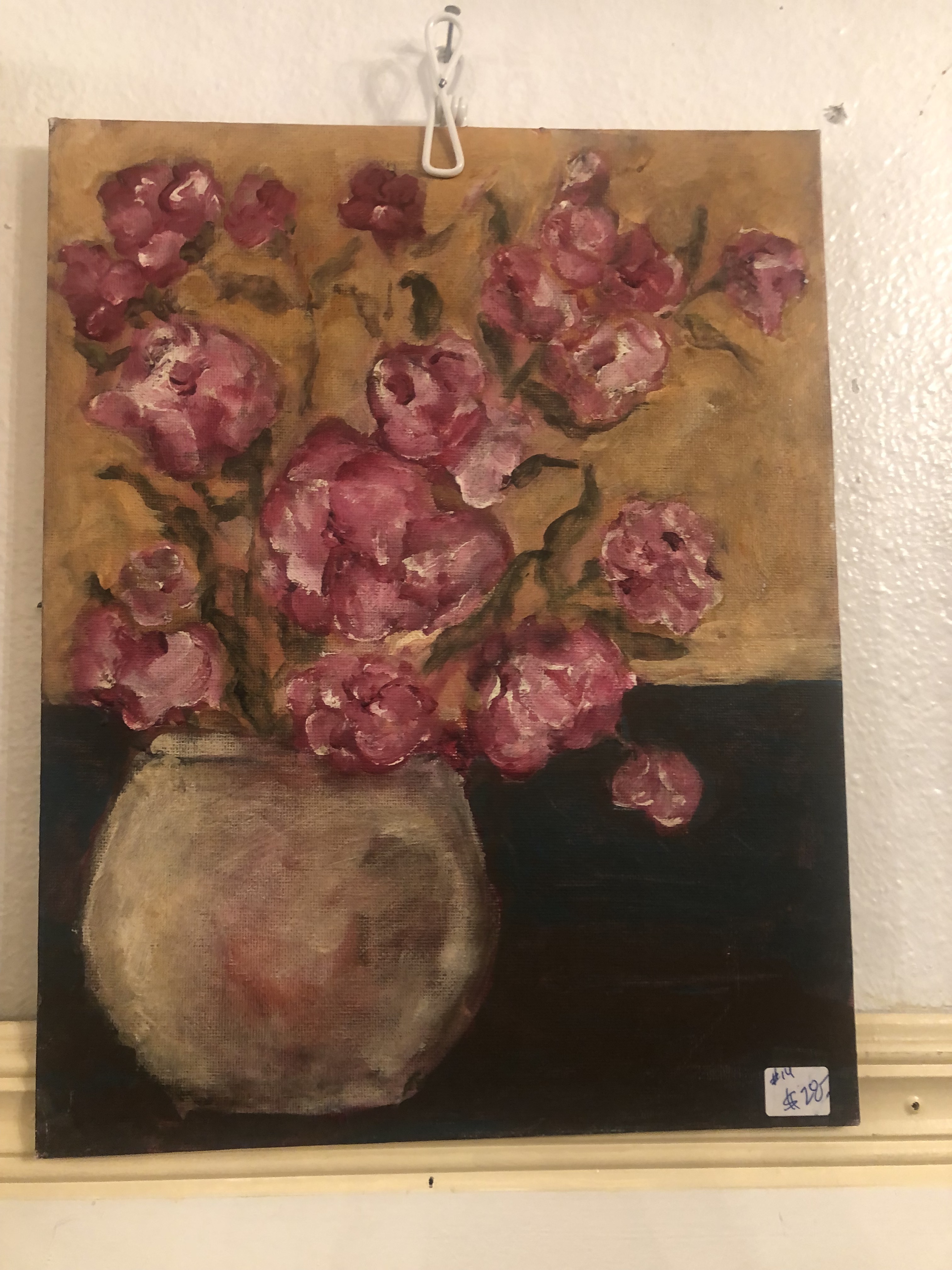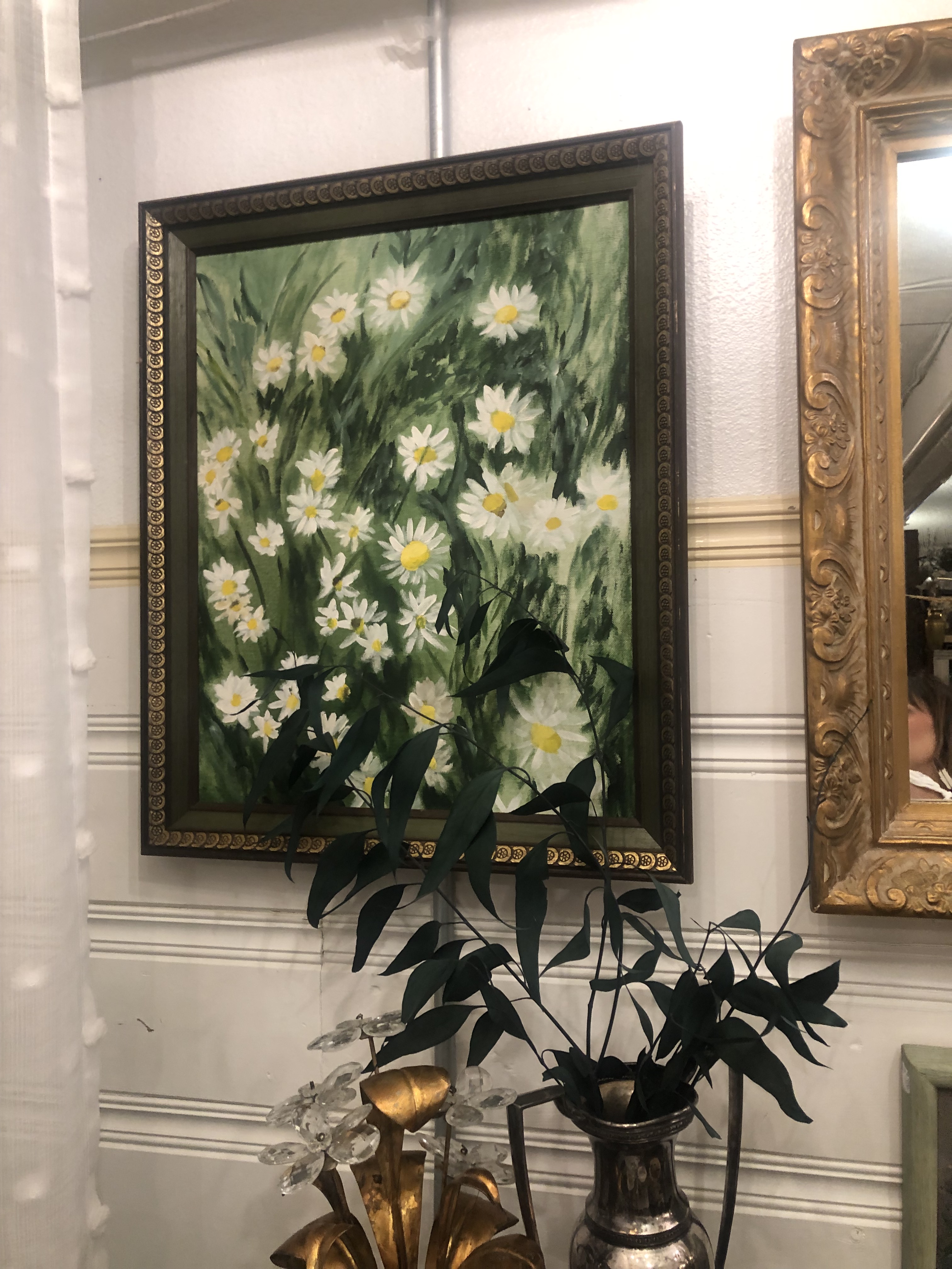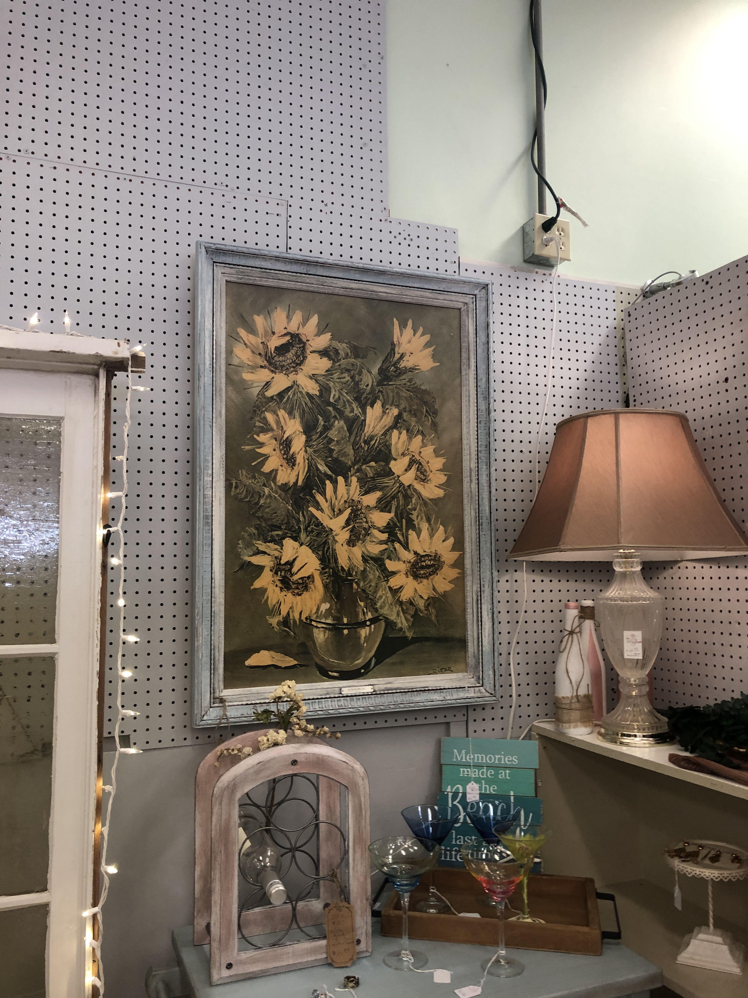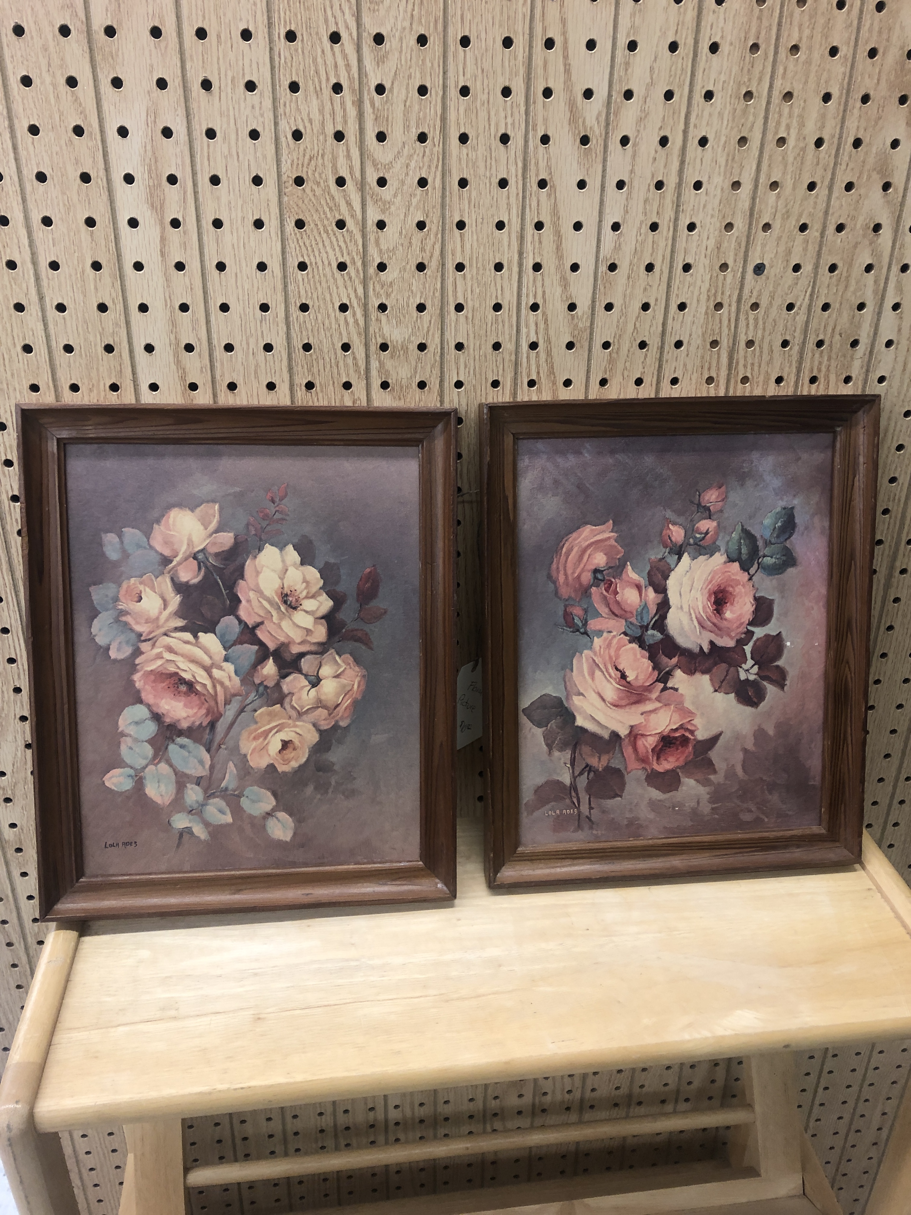 We always make time to go thrifting when we’re together, and now my main objective for these outings is to find the perfect floral painting. I’m still in the gathering phase of this project, unsure of which wall in my house will win the honor of displaying such a masterpiece when the time comes, but my sister Emma already has hers up in her dining room! So proud.