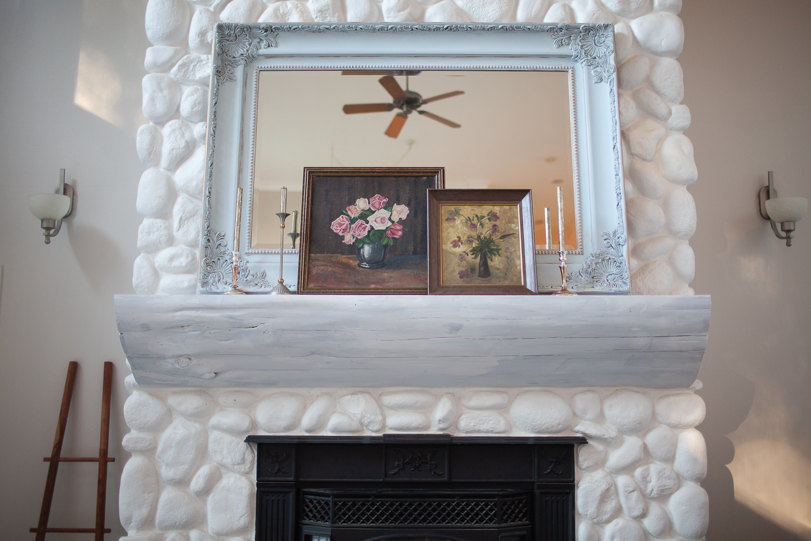 While I wait for my family of paintings to feel complete, I have two up on my fireplace mantle. At first, I tried to arrange as many paintings as I could fit up there in an eclectic way–the way I imagine the gallery wall will eventually feel, but here, understated and accented with some shimmery candles felt more fitting.